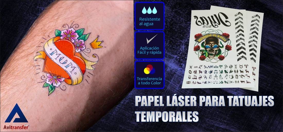 Recorte el diseño y coloque la impresión contra la piel. La zona debe estar limpia y preferiblemente afeitada de ser necesario.